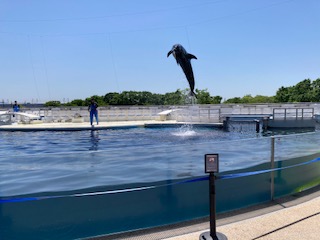 ショーの時刻に合わせて集まり「イルカショー」を見ました。イルカのディールくんの頑張りに拍手を送りました。