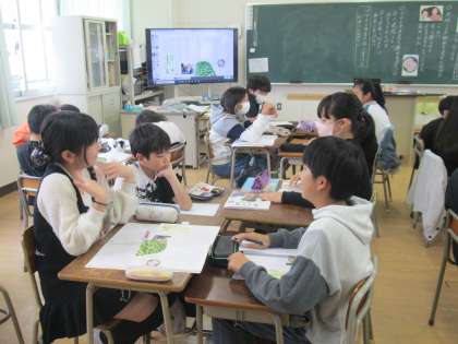また、こうすけ君に代わってアサガオを育て続けたり、穫った種を骨髄バンクの運動で配ったりするお母さんのk持ちについて、グループで意見を交流しtえ考えを深めました。