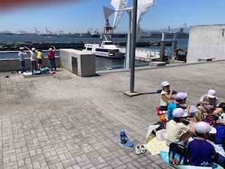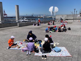 港の見晴らしの良い場所で、緩やかな潮風に吹かれながら、お弁当を食べました。