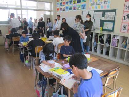 学習参観ではグループになって漢字の成り立ちについて調べたり、オリジナルの漢字を考えたりして、最後にみんなに発表をしました。