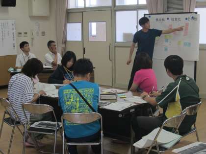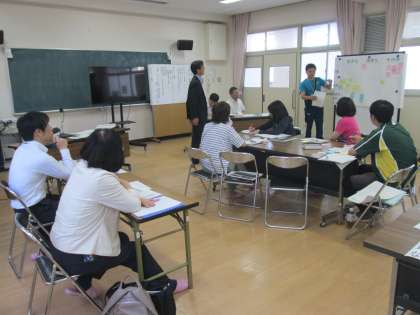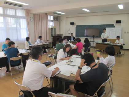 研究討議会ではまず、授業者が授業づくりと本日の授業を終えてのふりかえりを行いました。その後、グループに分かあれて研究授業の焦点化と視覚化を中心に、成果と課題また改善案を出し合って話し合いました。