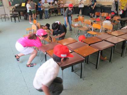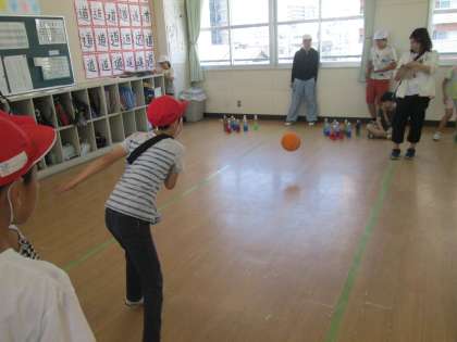 受付でマップにハンコを押す1年生、お客さんの案内をする2年生、ルール説明やゲームの進行のお手つだいをする3年生と4年生、得点を計算する5年生、そしてお店の全体をまとめる6年生。学年に合わせて枠割分担をして、子ども達はお店の仕事も楽しんでいました。