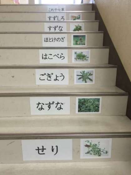子どもたちがさらに楽しんで暗唱に取り組めるようにと、先日、階段の段スペースを活用して、子ども達になじみのある「名文・詩文」を掲示しました。(これからも増やしていく予定です。)子どもたちは早速、「ね・うし・とら・う・たつ・み…」と言いながら階段をのぼっています。これを機に、「名文・詩文の暗唱」の取組みが更に広がっていけばと願っています。ご家庭でも「いくつ覚えた?」「覚えたものが言える?」などお声掛けいただくとともに、お子様といっしょに「名文・詩文の暗唱」を楽しんでいただけたらうれしいです。