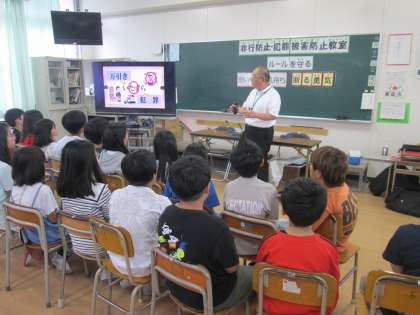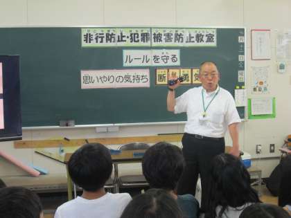 毎年、夏休みに入る前のこの時期に、大阪府梅田少年サポートセンターから講師の方をお招きし、『5年生の非行防止教室』の特別授業を実施していただいています。