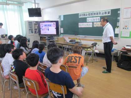 梅田少年サポートセンターの講師の方が、5年生の子ども達に語りかけます。