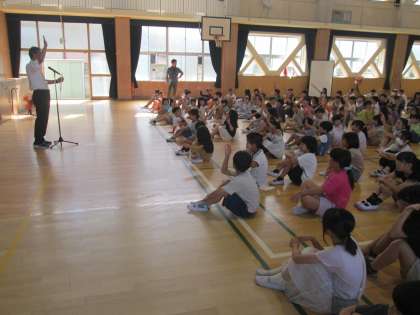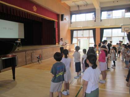 今日は1学期の終業式。校長先生のお話では、「じゅうそう」にちなんだ学校の目標について振り返りました。