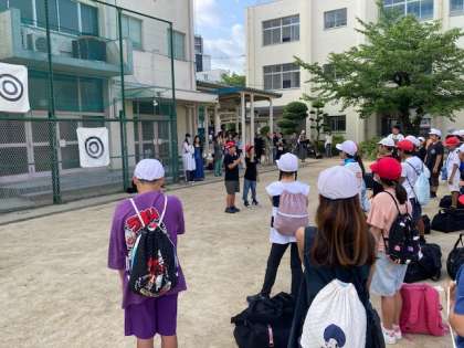 少し眠そうな顔で集合した5・6年生。