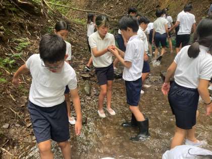 上手な子がアドバイスしたり、獲ってあげたり、獲って触らせてあげたりと、協力して活動できています。