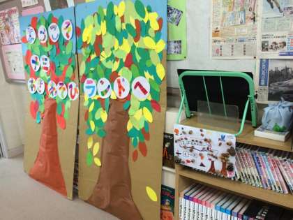 秋の自然を楽しめる遊びをいろいろと考えた1年生の子どもたち。