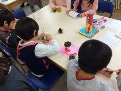 この日のために、どんぐりやまつぼっくりを、たくさん拾ってきてくれたり、