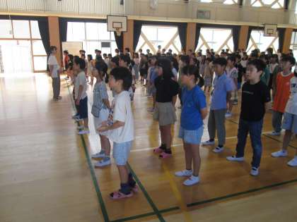 校長先生のお話では、夏休みの間に大いに盛り上がったパリ・オリンピックのことを取り上げていました。「活躍した選手も、良い結果が出なかった選手も、競技が終わってからのインタビューで、『支えてくれた人達に感謝しています。』と答えているのが心に残りました。家族やお友達、周りの人にありがとうと思う気持ちが大切ですね。」と、校長先生は子ども達に優しく語りかけていました。