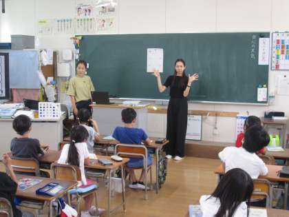 3年生の外国語活動ではAnne先生といっしょに、好きなものや苦手なものをスピーチする自己紹介の学習をしていました。