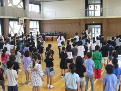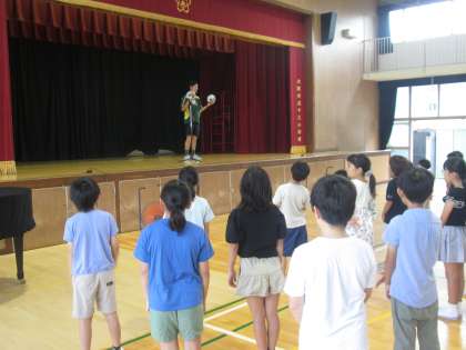 月曜日の児童朝会で先生が新しいボールを見せて紹介すると、子ども達はとっても喜んでボールを早く使いたそうでした。児童の様子を見に来てくださったPTAの方に、子ども達が「ありがとうございました。」とお礼を言いました。