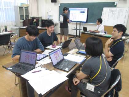 グループではPCの思考ツールを活用し、研究授業での成果、課題と思われること、また改善点について意見交流が行われました。「先生からの手紙で子ども達の気持ちがほぐれ、授業の導入の雰囲気がとても良かった。」、「横書きの板書で、主題について子ども達が考えやすかった。」など、研究授業の成果が多く出ました。