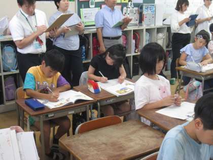 大阪市小学校研究会道徳部の研究授業が、本校の4年の教室で行われました。午後の授業に合わせて市内のいろいろな小学校から、道徳研究部に所属されている先生方が来校されて、子ども達の学習の様子を参観しました。