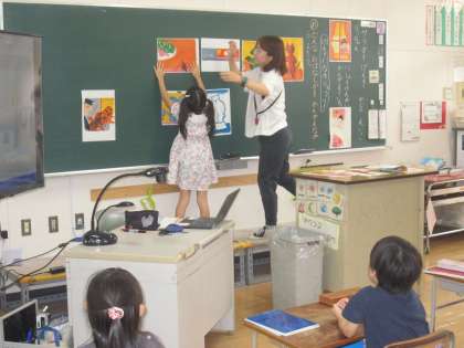 1年生は国語の学習参観をしました。物語の挿絵をよく見て、お話に合うように並べ替えました。