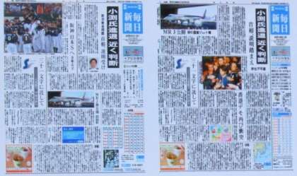 <写真下>で問題です。この2つの新聞は、同じ日の関東版と関西版の新聞だそうです。どちらが関西のものでしょうか?