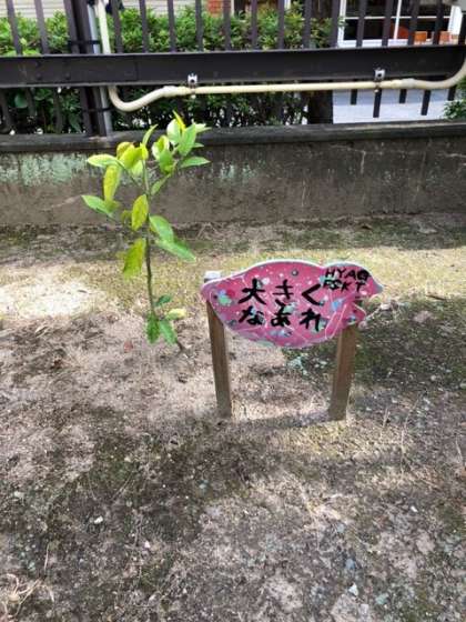 小さな木ながら、いろんな方々に見守られ、生長を助けてもらいながら、立派な実をつけています。