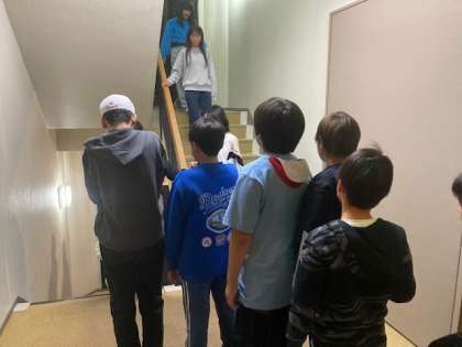 その後、部屋に入って避難訓練を行いました。