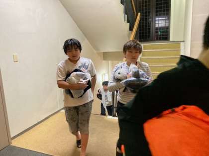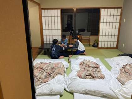 夜の集いまでの時間は、荷物整理、しおり確認、トランプ遊びと、上手に時間を使っています。