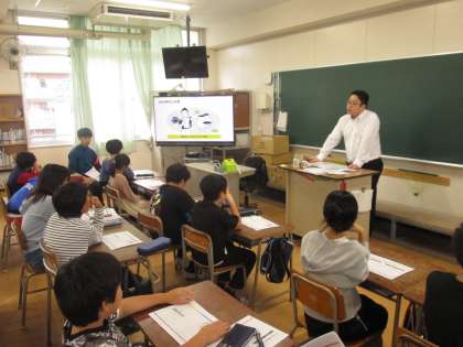 今年度の家庭科の教科書には、「生活を支える物やお金」という単元が新しく入り、小学校からお金について学習することになりました。そこで、三井住友銀行・十三支店、SMBCコンシューマーファイナンス株式会社から講師の先生をお招きして、5年生と6年生に「お金の学習」の特別授業をしていただきました。