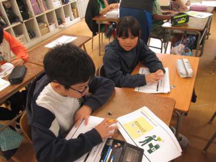 5年生が盛り上がったのは、おこづかいゲームです。「家族が疲れていたら…」、「エンピツが短くなったら…」と色々な状況で、おこづかいを使うかどうかを判断します。我慢すればもちろんお小遣いは減らないのですが、我慢ばかりするのも大変です。講師の先生から、「お金は使うことも、貯めることも大事です。お金はよく考えて使うようにしましょう。」と、教えていただきました。