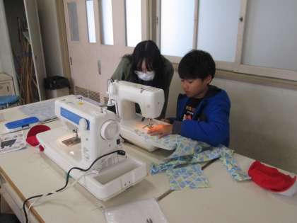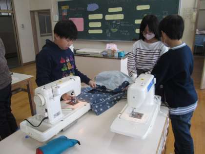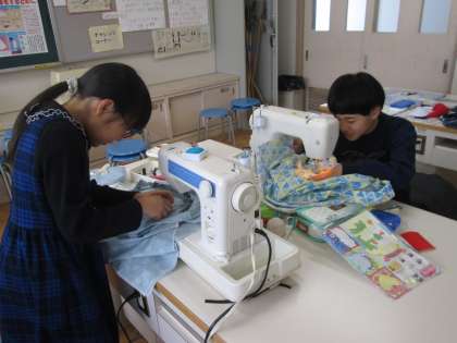 6年生が家庭科の学習で、2学期の裁縫をしています。今、作っているのは便利で環境にも配慮したエコバッグです。