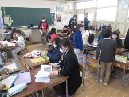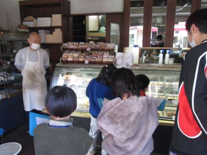 まずは教室でボランティアのお母さんたちとご挨拶をして、グループが回るお店の確認をしました。町たんけんの時間になると、それぞれのお店に向けて出発です。