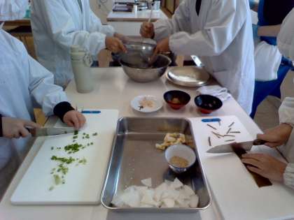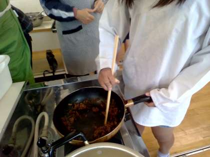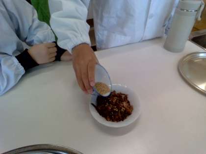 だしをとったこんぶとかつおぶしで、ふりかけを作りました。(写真上・中・下)「ごはんにあう〜」と大好評でした。毎回だしをとるのは、大変だと思うので、お正月などの特別な時にとるのもいいかもしれません。