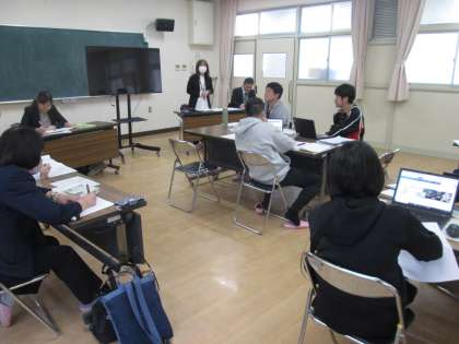 グループに分かれての討議では、教科書の取り扱いや教材の提示の仕方、また児童が発表をするときのスタイルなど、活発な議論がされました。
