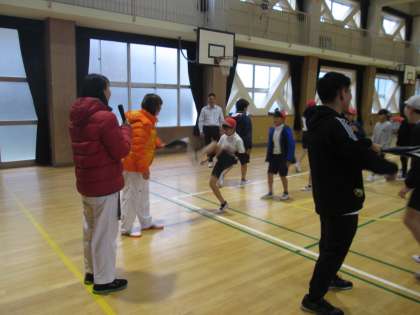 さぁ、いよいよ子ども達も蹴り技に挑戦です。先生が構えるミットをめがけて、思いっ切り蹴りをします。「ヒザを高く上げるようにして、足を伸ばしましょう。」と岡本先生のアドバイスを聞いて、子ども達の蹴り技もどんどん上達しました。