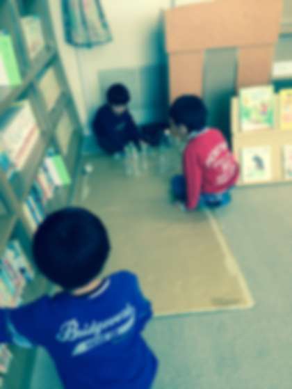 そのほかにも、糸電話、空気砲、傘袋ロケット、とことこ紙コップ人形など、いろんな手作りおもちゃを作って遊びました。