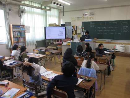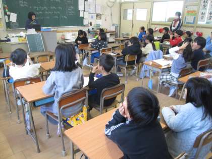 通知表と冬休みの宿題を配り終えて、みんなで動物クイズをして楽しんでいました。「ゾウの背の高さってどれくらいだと思う?重さは?」