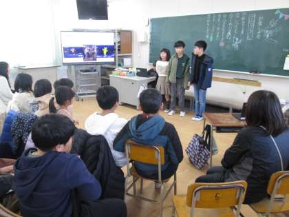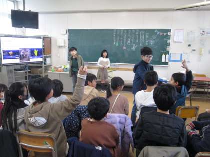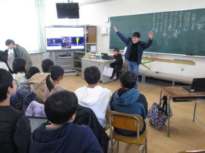 ジェスチャーゲームでは動物のマネや、アニメやゲームのキャラクタ−のマネをして、教室に笑い声が溢れました。