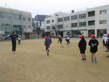 今回の6年生のスポーツ出前講座のテーマは「陸上」です。陸上と言っても様々な種目が思い浮かびますが、ゲスト講師の方に「走る」ということを中心に教えていただきました。