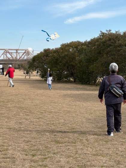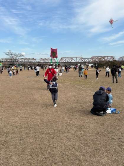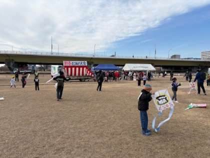 3月並みに温かく晴れ渡った空のもと、淀川河川敷にて新春たこあげ大会が実施されました。