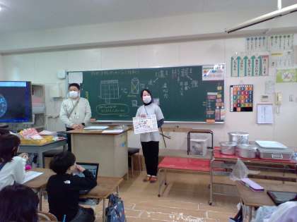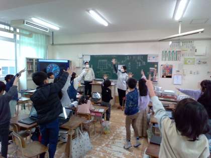 2年生は、日めくりの給食カレンダーのじゃんけんを給食調理員さんとしました。(写真上)