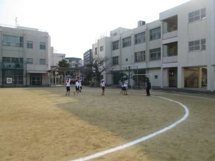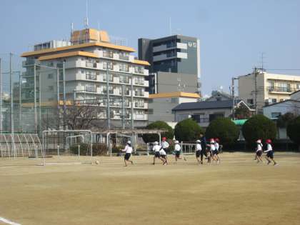 出前授業の後半には、紅組vs白組でサッカーのゲームをしました。