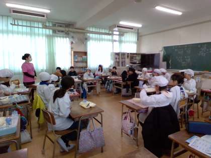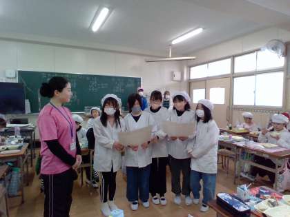 今日は4年生の教室に、調理員さんを招き、一緒に給食を食べました。最後に調理員さんからひと言ありました。4年生は給食いつも完食!今日もおかわり争奪戦!でした。4年生が心を込めてつくった感謝状も渡しました。
