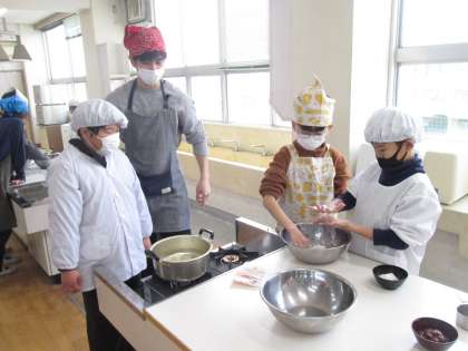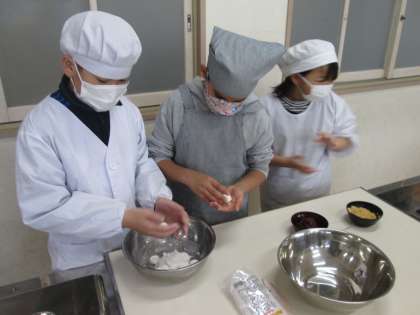 午前中に漢字検定を頑張った5年生は、午後から調理実習を楽しみました。今回、5年生がつくるのは「おだんご」です。