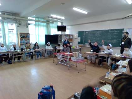 1月30日は5年生の教室に調理員さんを招待しました。給食を作るときに、気を付けていることは何ですか。好きな給食はなんですか。などたくさんの質問がありました。