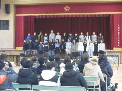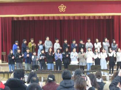 6年生の合唱『翼をください』は前半をのびやかに、そして後半に楽しいアレンジを取り入れて歌いました。また、『いのちの歌』では高音パートと低音パートで、美しいハーモニーを響かせました。