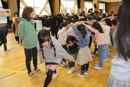 『卒業を祝う会』の最後、1年生から5年生が並んだ花道を6年生が退場します。下級生がつくる小さなトンネルを、少し嬉しそうに、それでいて少し寂しさを感じながら、背をかがめて6年生のお兄さんとお姉さんが達が通り抜けました。