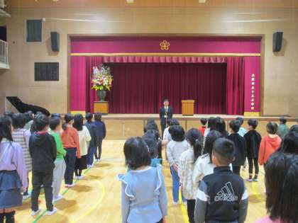3学期の、そして学年の最後の一日。1時間目、講堂に全校児童が集まると、31人の6年生のいた場所が空いていて寂しく感じました。
