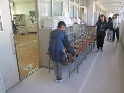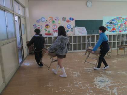 それぞれの学年が進級すると、4月に使用する教室の机とイスの数を調整しなければいけません。そのために5年生の児童が、下級生が下校してから引っ越しのお手伝いををしてくれました。