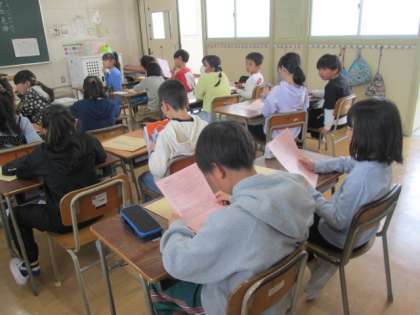 次の授業では新しい教科書やお手紙など、たくさんの配布物を受け取りました。いよいよ新しい学年のスタートです。