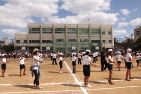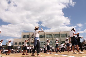 次は、午後の部最初の演技、来賓・PTA・地域・全学年による「みんなで踊ろう!」です。