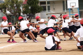 それぞれのチームが力を合わせて、力いっぱいつなを引きあいました。