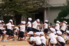 全校つなひきは、低学年・中学年・高学年に分かれて、合計6回つなを引きあいます。