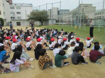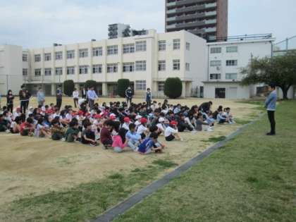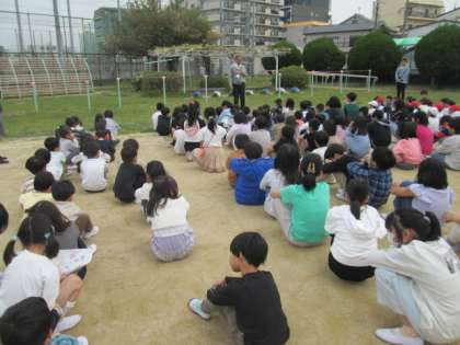 避難訓練の最後に校長先生のお話を聞きました。「今日の避難訓練に真剣に取り組むことができましたか。火事や地震はいつ起こるかわかりません。訓練を真剣に取り組むことが、自分の命を守ることにつながります」。